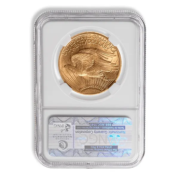 One of the most beautiful and desired coins in the world is the $20 Saint-Gaudens, named for its designer who was an American sculptor also responsible for the $10 Indian Head Coin.