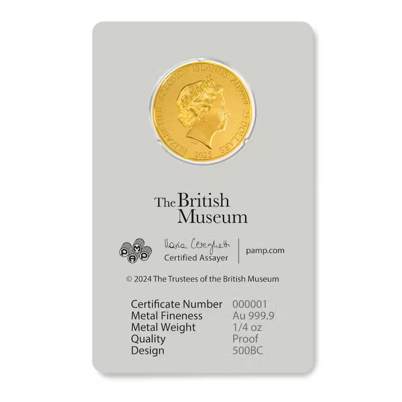 British Museum 500BC Helmet 1/4 oz Gold Coin 2024