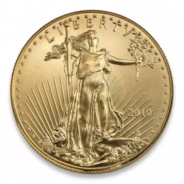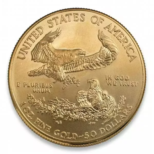 Made from gold mined exclusively in the United States, the coin uses 24-karat gold with a modicum of alloy that helps protect the coin. The result, for the $50 Eagle, is a one-ounce 22-karat gold coin with one full Troy ounce of pure gold. Coins are also available with face values of $25, $10 and $5, containing ½, ¼ and 1/10 ounces of pure gold, respectively.