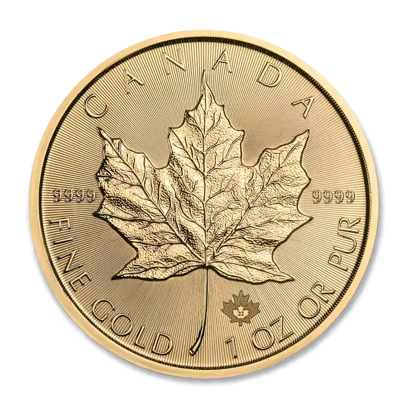 The Gold Canadian Maple Leaf coin, struck by The Royal Canadian Mint, has had a fine gold content of 0.9999 since 1983. This high gold content makes the coin susceptible to scratching, so handle with care.