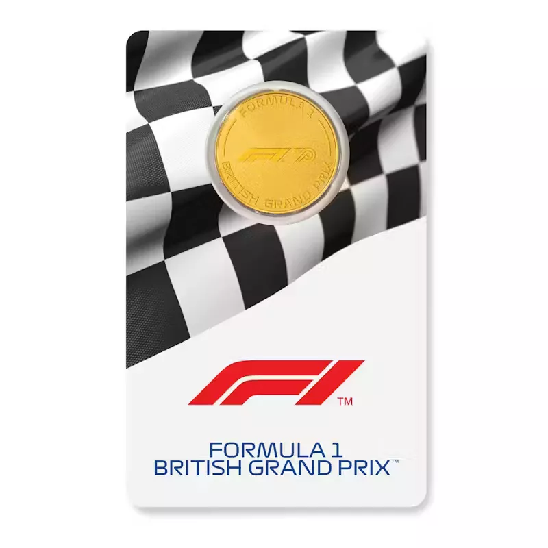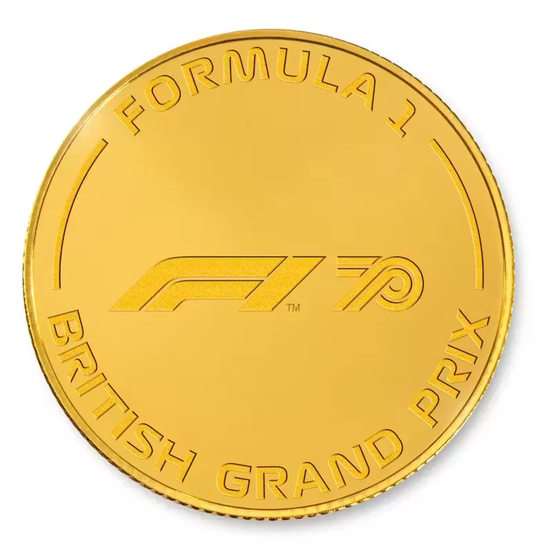 This unique design features the specially-created F1 70 logo on the coin’s reverse, as well as the name “British Grand Prix”, in F1’s own distinctive font, while the “70 – Born 1950” logo appears on the protective package.