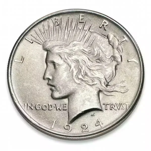 The Peace Dollar was minted from 1921 to 1928 and then again in 1934 and 1935. The Pittman Act of 1918 required in part that the United States strike millions of silver dollars. The U.S. Mint started with the Morgan Dollar; however, numismatists petitioned the government to issue a coin symbolic of peace following World War I. Anthony de Francisci was one of eight prominent sculptors invited to take part in a contest to design the Peace Dollar. He won after using his wife as a model to depict Lady Liberty.