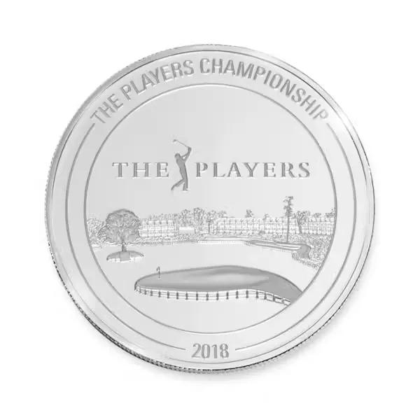 The 2018 2.5 oz 999.0 fine silver proof is minted by PAMP SA, and only 2,000 will ever be made. The coin’s design shows the famous 17th green at TPC Sawgrass, where the PLAYERS CHAMPIONSHIP takes place.