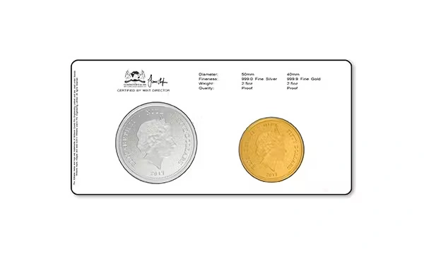 A silver coin is included at no charge with the purchase of each gold coin. Each set comes in a presentation box with a numbered certificate of authenticity. Silver coins are also available separately in a limited edition of 400.